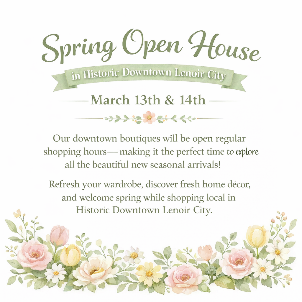 Celebrate the season with us in Historic Downtown Lenoir City as our local retailers unveil their new spring collections! Enjoy fresh styles, seasonal finds, and a day of shopping while supporting your favorite downtown businesses.